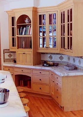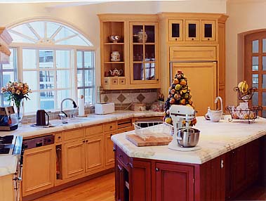 flat oil varnish. The cabinetry below the central island was