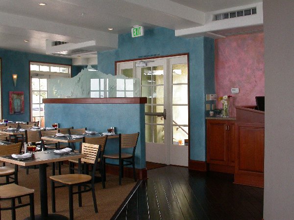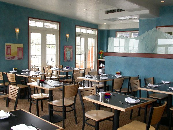 The owners of this beachfront restaurant wanted dynamic colour to complement the quiet wood and laminate surfaces